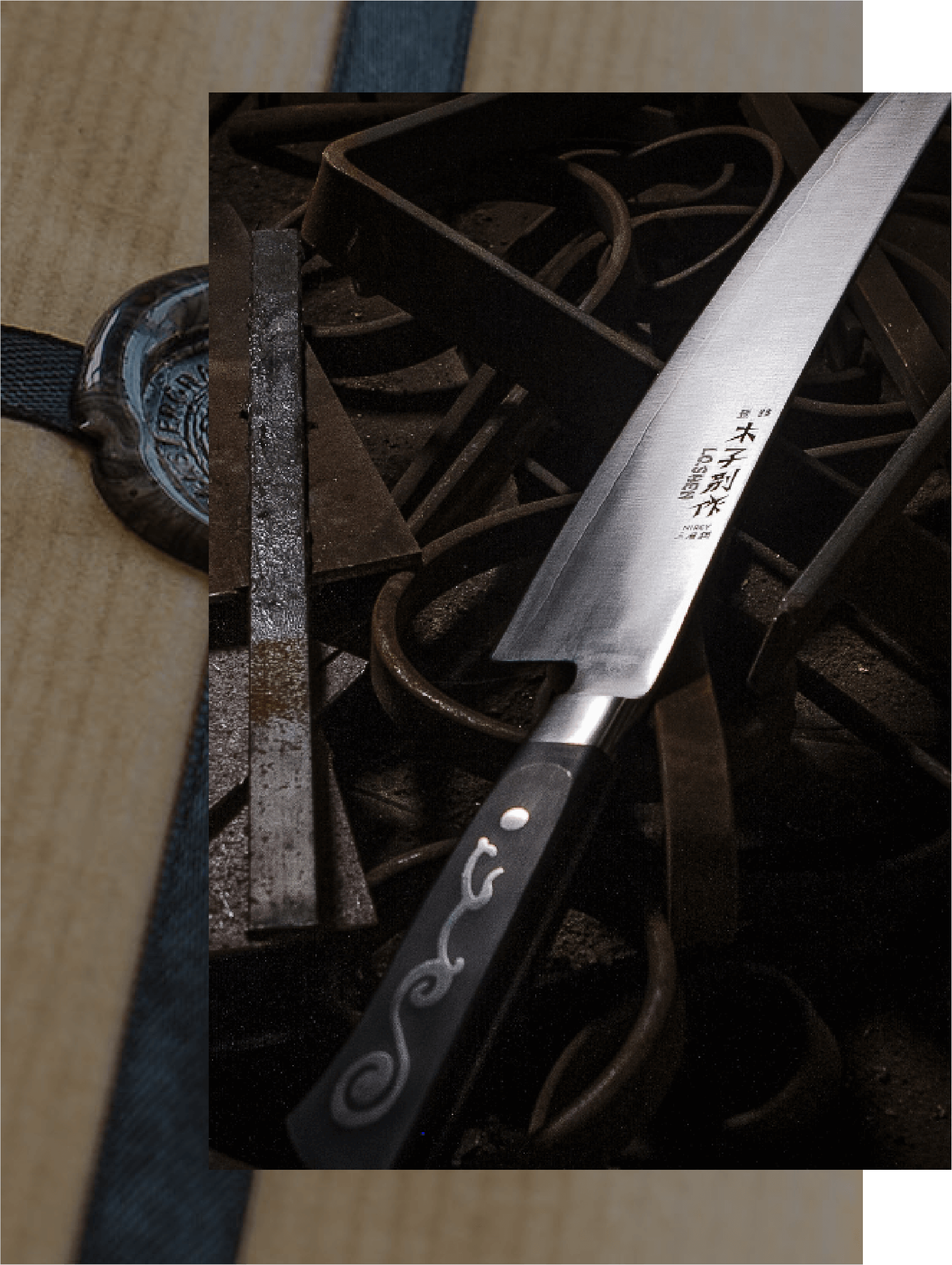 The I.O.Shen Mastergrade range of knives are all made using Triplex steel technology. This is the process of sandwiching a super hard layer of Rockwell 62° stainless steel between 2 layers of much softer Rockwell 10° stainless steel. This allows the use of a very hard steel that will take and hold an exceptionally sharp edge without the usual issue of brittleness being a limiting factor. The edges are sharpened by hand to a 15° angle.